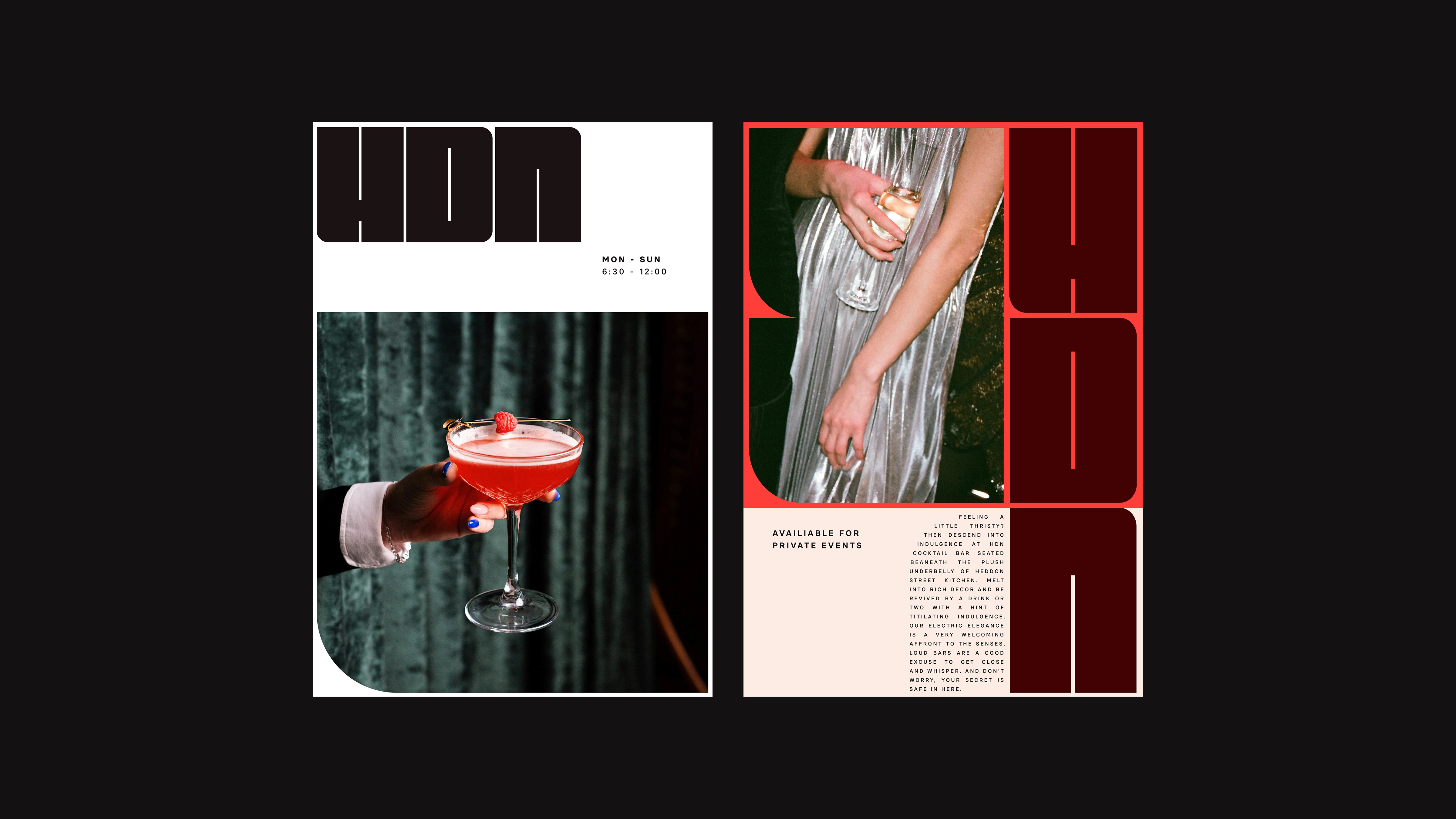 Our criteria for the tone of voice was to make every interaction with HDN feel intimate and playful. And we did it by layering messages. HDN is an open secret, sitting between the elegance of Mayfair and electricity of Soho. It is itself a paradox, and we therefore use oxymorons and hidden messages throughout comms to sound confident, sensual and a little naughty.