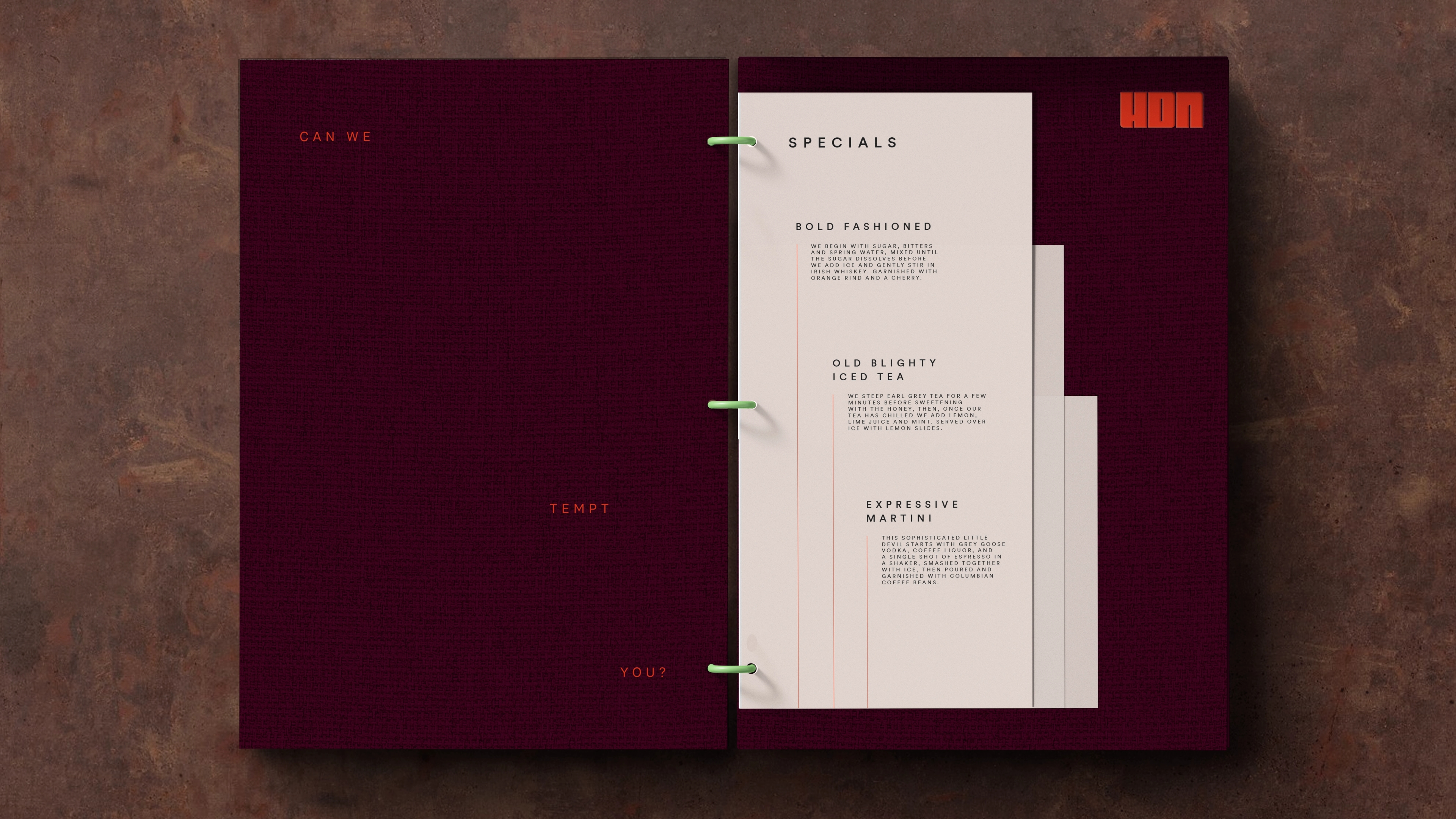 In a move to distance the brand from the kitchen we felt a name change would help position the bar as its own free-thinking, self-reliant space. Confident, bold and almost blunt, HDN does still nod to the previous name ‘Hidden Heddon’ but now with a reinvented identity, and a little more Soho sass.